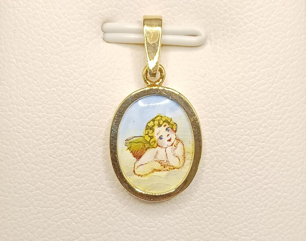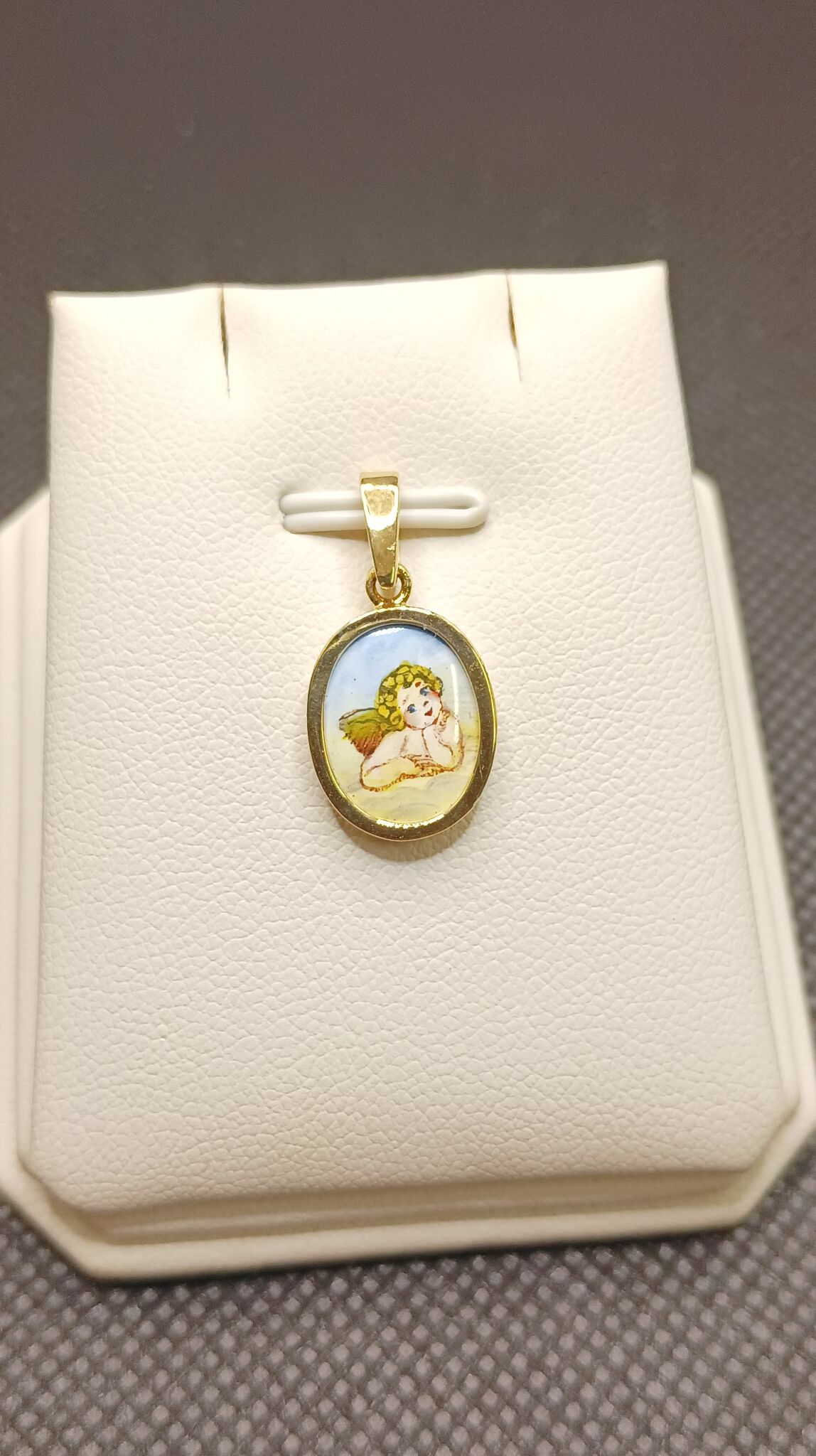 Zlatý přívěsek s ručně malovaným andělíčkem - různé velikosti.